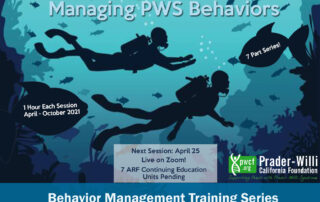 Register Here Join us for a brand new behavior management training series presented by Lisa Graziano, M.A., LMFT. This 7 part series will explore the different aspects of PWS behaviors and introduce various techniques you can implement to manage these